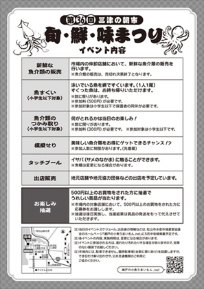 第36回三津の朝市「旬・鮮・味まつり」開催について